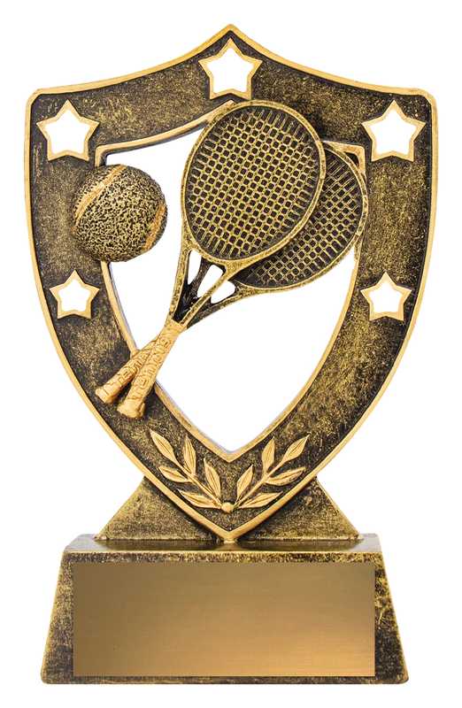 Classic wreath and shield inspired design, the Tennis Trophy Gold Shield is an affordable and popular award choice. Trusted trophy option for a generic award that is available in 3 convenient sizes.